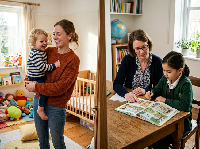 Ребёнку до трёх лет, оба родителя работают - нужна няня. На этом этапе задача - уход, режим, безопасность и эмоциональный контакт.